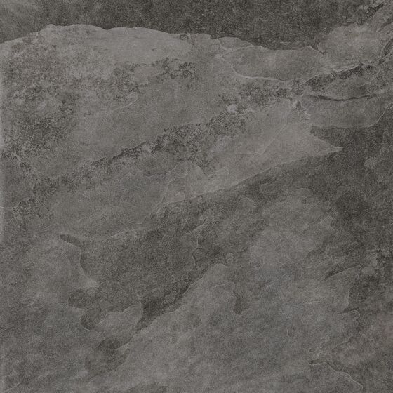 Large square, glazed porcelain wall and floor tile in matt black with rectified edges. For use in kitchens and bathrooms, great for underfloor heating and wet-floor areas.
